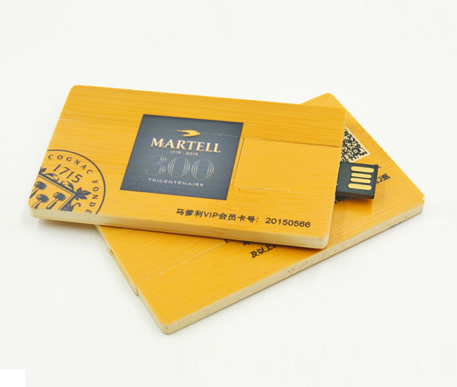 木頭卡片U盤的外殼采用高檔木質(zhì)材料制成,以會(huì)員卡的造型為主題設(shè)計(jì),U盤整體形狀為長(zhǎng)方形,U盤的幾個(gè)邊角都切成了圓角,不僅圓潤(rùn)還不傷手,還滿足了人們視覺上的美感,卡片的正反兩個(gè)木頭表面都涂上了黃色的油漆,U盤的正面還加上了黑色的logo,非常的醒目,具有很好的廣告宣傳作用。同時(shí)卡片U盤的印刷面積大,便于攜帶的特點(diǎn),是定制率高的的U盤款式,深受定制禮品U盤客戶的喜愛,另外,U盤的芯片部分采用的是質(zhì)地輕且薄的的黑膠體質(zhì)地輕且薄。