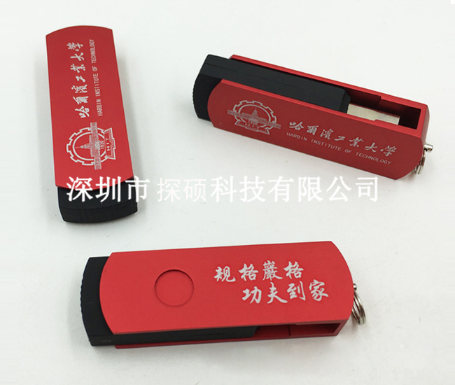 哈爾濱工業大學(簡稱哈工大)隸屬于工業和信息化部,是由工信部、教育部、黑龍江省共建的國家重點大學,是首批進入國家“211工程”和“985工程”建設的若干所大學之一。這款經典紅色大旋轉夾子U盤由哈爾濱工業大學定制,U盤正面印著學校的LOGO圖案及學校名稱,一目了然;背面則印著哈工大的校訓“規格嚴格,功夫到家”八個字,十分具有紀念意義。